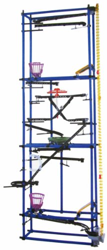 - You (your kids will never displace you once they see this kit) assemble a frame of your choice and adorn it with sets of chutes, slides, funnels, catch baskets, trampolines... You name it.